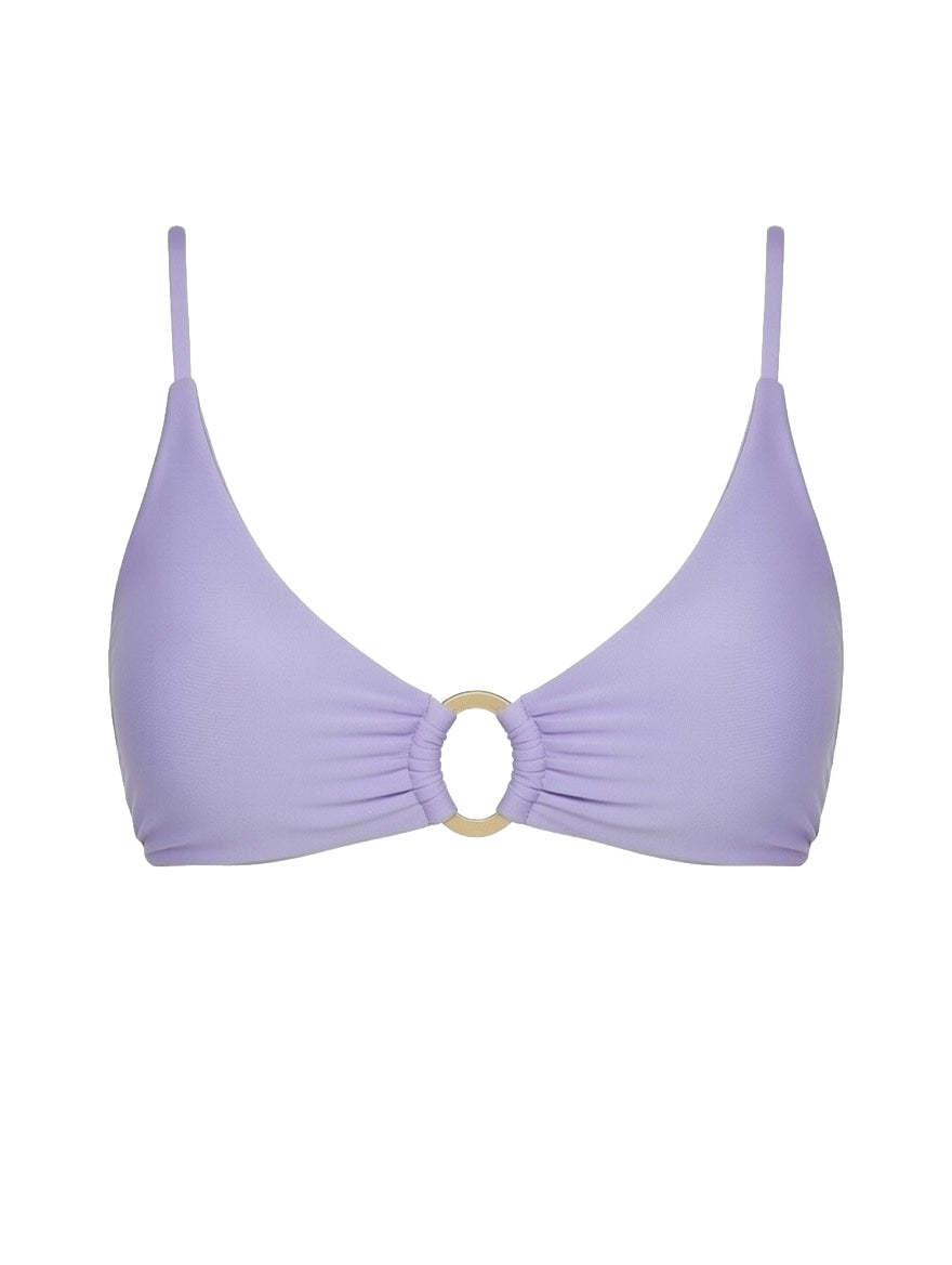 Tænk en klassisk trekantsbikini - men med et moderne twist. Denne bikinitop er lavet til dig, der gerne vil tilføje lidt ekstra sass til livet. Den smukke gyldne ringdetalje giver et elegant, chic touch til dine girls. Og selvom den har lidt attitude, går du ikke på kompromis med støtte eller komfort. Med ekstra materiale i side-boob-området sørger toppen for, at dine girls bliver, hvor de skal - uanset størrelse.